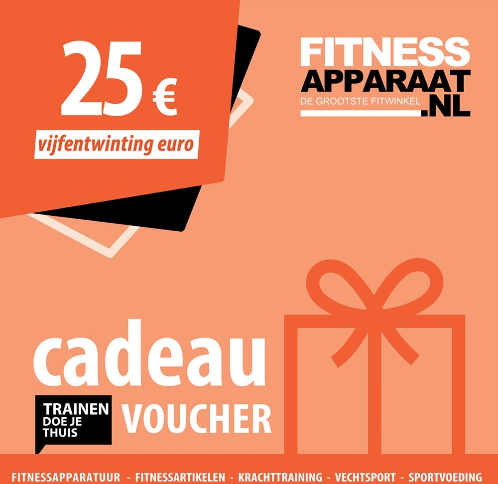 De Fitnessapparaat Cadeaubon is het sportiefste cadeau voor jong en oud. De cadeaubon wordt naar je verzonden in een handige PDF en bevat een unieke kortingscode waarmee de gelukkige ontvanger een eenmalige korting van€ 25,- krijgt bij besteding bij Fitnessapparaat.nl. Dus weet jij niet wat je moet geven als vaderdags-, moederdags-, verjaardagscadeau of welke gelegenheid dan ook. Geef ze een Fitnessapparaat Cadeaubon! Wanneer je de kortingsbon besteld hebt, ontvang je een mail met de unieke kortingscode en een bijlage. Deze bijlage kan gebruikt worden om het bedrag en de kortingscode persoonlijk in te voeren zodat je het cadeau kunt geven aan een ander!De bonnen zijn beschikbaar in de volgende bedragen:€5,- €10,- €25,- €50,- €100,- €150,-Let op! Het kan max. 20 minuten duren totdat je de kortingsbon in de mail ontvangt. Deze cadeaubon kun je alleen online inwisselen op Fitwinkel.nl , Fitwinkel.be&Fitnessapparaat.nlProduct specificaties