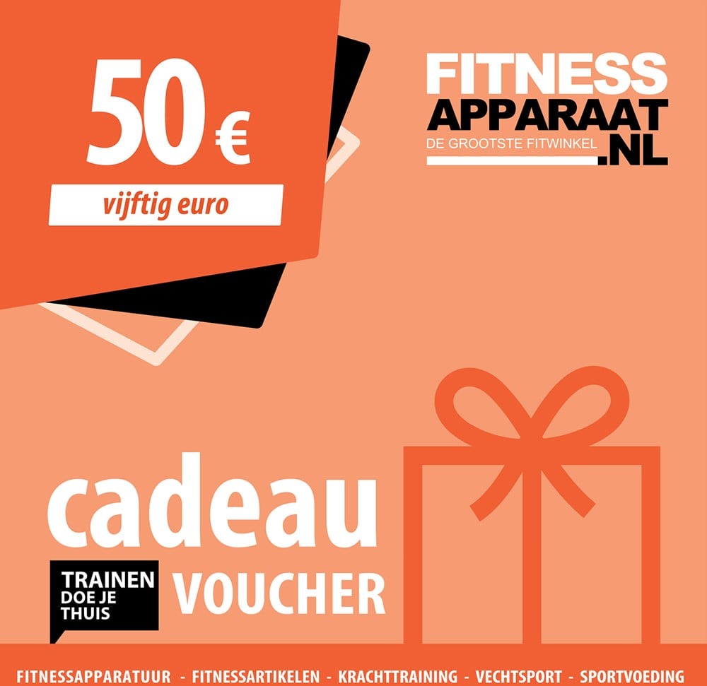 De Fitnessapparaat Cadeaubon is het sportiefste cadeau voor jong en oud. De cadeaubon wordt naar je verzonden in een handige PDF en bevat een unieke kortingscode waarmee de gelukkige ontvanger een eenmalige korting van€ 50,- krijgt bij besteding bij Fitnessapparaat.nl. Dus weet jij niet wat je moet geven als vaderdags-, moederdags-, verjaardagscadeau of welke gelegenheid dan ook. Geef ze een Fitnessapparaat Cadeaubon! Wanneer je de kortingsbon besteld hebt, ontvang je een mail met de unieke kortingscode en een bijlage. Deze bijlage kan gebruikt worden om het bedrag en de kortingscode persoonlijk in te voeren zodat je het cadeau kunt geven aan een ander!De bonnen zijn beschikbaar in de volgende bedragen:€5,- €10,- €25,- €50,- €100,- €150,-Let op! Het kan max. 20 minuten duren totdat je de kortingsbon in de mail ontvangt. Deze cadeaubon kun je alleen online inwisselen op Fitwinkel.nl , Fitwinkel.be&Fitnessapparaat.nlProduct specificaties