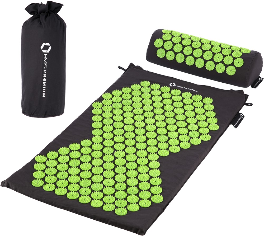 De HMS Premium Spijkermat met Spijkerkussen is een effectief hulpmiddel om te ontspannen en pijn te verlichten. De mat helpt bij het verminderen van spierpanning, het verbeteren van de bloedsomloop en het stimuleren van endorfine, waardoor je je energieker en rustiger voelt.Optimale ontspanning en drukpuntmassageHet setje bevat 9.618 plastic spikes, verdeeld over speciaal gevormde rozet-elementen, die zorgen voor optimale drukpunten op je lichaam. Je kunt de mat gebruiken door erop te liggen, te staan of te zitten, waardoor je rug, voeten, nek en andere spiergroepeneffectief masseert. Het kussen is ideaal voor de nek en onderrug, maar kan ook specifieke delen van je lichaam behandelen, zoals armen en benen.Praktisch en eenvoudig te onderhoudenDe hoezen van de mat en het kussen zijn afneembaar en eenvoudig te wassen. Dankzij de meegeleverde draagtas neem jehet complete setje overal mee naartoe. Zo kun je altijd en overal genieten van een ontspannende en therapeutische massage.SpecificatiesModelnaam: AKM03Mat afmetingen: 74 x 42 x 2 cmKussen afmetingen: 37 x 15 x 10 cmAantal masserende schijven: 178 / 51Aantal drukpunten per schijf: 42Totaal aantalacupressuurpunten: 9.618Set bevat: mat, kussen, draagtasProduct specificaties