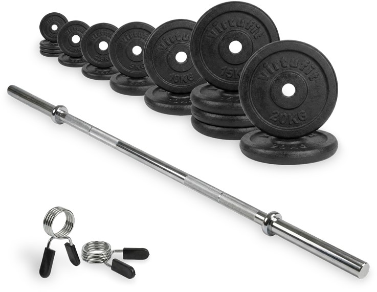 Maak je homegym compleet met de VirtuFit Halterset Gietijzer 30 mm - 150 kg. Deze maximale set, opgebouwd rondom een extra lange halterstang van 200 cm, biedt de ultieme basis voor de zwaarste compound oefeningen thuis. Dankzij de combinatie van duurzaam gietijzer en een hoogwaardige afwerking beschik je over een complete, professionele uitrusting die bestand is tegen de meest intensieve krachttrainingen.Het VirtuFit Halterset Gietijzer 150 kg in het kortHoogwaardige stalen stang met chrome finish Maximale grip door karteling Meer laadvermogen door compacte schijven Slijtvast en massief gietijzer Snelle veilige veerclipsluiters Universele 30 mm maatvoering Halterstang belastbaar tot 317 kg Stevigen betrouwbaar ontwerp Stevig en betrouwbaar ontwerpDe VirtuFit Halterstang vormt het hart van deze set en is vervaardigd uit hoogwaardig staal. De duurzame chrome coating biedt een strakke uitstraling en beschermt de stang effectief tegen roest en slijtage. Dankzij de karteling op de handgrepenbehoud je altijd een solide grip, ook tijdens de zwaarste lifts.Veilig en vlot gewichten wisselenGeen vertraging tijdens je workout: de set bevat twee sterke veerclipsluiters. Deze zorgen ervoor dat de schijven stevig op hun plaats blijven zitten, ongeacht de intensiteit van je training. Dankzijhet slimme ontwerp wissel je binnen enkele seconden van gewicht, zodat je hartslag hoog blijft en je focus scherp.Gietijzeren halterschijvenDe halterschijven in deze set zijn gemaakt van massief gietijzer en variëren van 0,5 kg tot 20 kg. Gietijzer is een compact en duurzaam materiaal, waardoorje het volledige gewicht van 150 kg probleemloos op de halterstang kunt plaatsen. Bestel deze set vandaag nog en begin direct met het serieus opbouwen van je spiermassa.Samenstelling van de set1x VirtuFit Halterstang 200 cm - 30 mm (10,8 kg) 2x Veerclipsluitingen voor snelle schijfwissels 2x 20 kg Gietijzeren halterschijven 4x 15 kg Gietijzeren halterschijven 2x 10 kg Gietijzeren halterschijven 2x 5 kg Gietijzeren halterschijven 2x 2,5 kg Gietijzeren halterschijven 2x 1,25 kg Gietijzeren halterschijven 4x 0,5 kg Gietijzeren halterschijven VirtuFitHet Nederlandse fitnessmerk VirtuFit staatgarant voor uitstekende kwaliteit. De fitnessapparaten en fitnessartikelen zijn vervaardigd uit kwaliteitsmaterialen en daarnaast is er veel aandacht besteed aan gebruikersgemak, design en uitgebreide functionaliteiten.Product specificaties