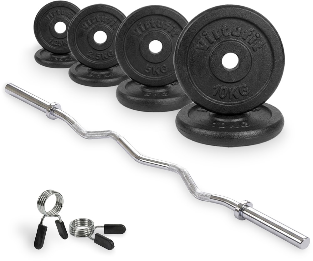 VirtuFit Gietijzeren Halterset - EZ Curlstang - Veerclip - 30 mm - 43 kg