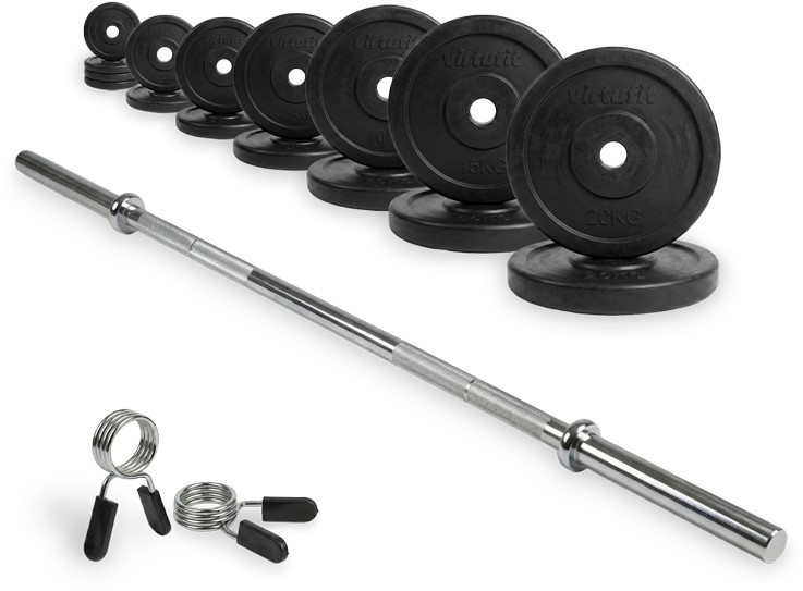 Maak je homegym compleet met de VirtuFit Halterset Rubber 30 mm– 120 kg. Deze uitgebreide halterset is opgebouwd rond een robuuste halterstang van 200 cm en vormt een uitstekende basis voor intensieve krachttraining thuis. De combinatie van hoogwaardig staal en geluiddempend rubber zorgt ervoor dat je elke workout naar een hoger niveau tilt.Het VirtuFit Halterset Rubber 120 kg in het kortHoogwaardige stalen stang met chrome finish Maximale grip door karteling Geluiddempende rubberen coating Beschermt de vloer tegen krassen Duurzaam en robuust ontwerp Snelle en veilige veerclipsluiters Universele 30 mm maatvoering Halterstang belastbaar tot 317 kg Stevig en betrouwbaar ontwerp Stevig en betrouwbaar ontwerpDe VirtuFit Halterstang vormt het hart van deze set en is vervaardigd uit hoogwaardig staal. De duurzame chrome coating geeft de stang een strakke uitstraling en beschermt effectief tegen roest en slijtage. Dankzij de karteling op de handgrepen behoud je altijd een solide grip, ook tijdens zware lifts.Veilig en snel gewichten wisselenGeen vertraging tijdens je workout: de set bevat twee sterke veerclipsluiters. Deze zorgen ervoor dat de halterschijven stevig op hun plaats blijven zitten, ongeacht de intensiteit van je training. Dankzij het slimme ontwerp wissel je binnen enkele seconden van gewicht zodat je training vloeiend blijft verlopen.Rubberen halterschijvenDe halterschijven zijn voorzien van een sterke rubberen coating. Deze coating werkt geluiddempend en beschermt zowel de schijven als je vloer tegen beschadigingen.Bestel deze set vandaag nog en profiteer van de voordelen van intensief thuisgebruik zonder concessies op kwaliteit.Samenstelling van de set1x VirtuFit Halterstang 200 cm – 30 mm (10,8 kg) 2x Veerclipsluitingen voor snelle schijfwissels 2x 20 kg Rubber halterschijven 2x 15 kg Rubber halterschijven 2x 10 kg Rubber halterschijven 2x 5 kg Rubber halterschijven 2x 2,5 kg Rubber halterschijven 2x 1,25 kg Rubber halterschijven 4x 0,5 kg Rubber halterschijven Dankzij de variatie aan gewichten bouw je jouw training nauwkeurig op. Met ruim 120 kg aan rubber gecoate halterschijven haal je direct een complete set in huis voor veilige en effectieve krachttraining.VirtuFitHet Nederlandse fitnessmerk VirtuFit staat garant voor uitstekende kwaliteit. De fitnessapparaten en fitnessartikelen zijn vervaardigd uit kwaliteitsmaterialen en daarnaast is er veel aandacht besteed aan gebruikersgemak, design en uitgebreide functionaliteiten.Product specificaties