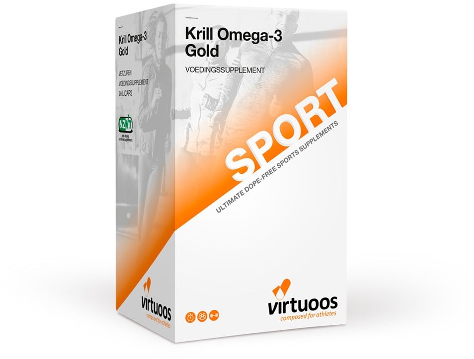 Krill Omega-3 Gold is een omega-3 supplement op basis van krillolie. Het bevat de omega-3 vetzuren EPA en DHA. Een dagelijkse inname van 250 mg EPA en DHA is goed voor het hart, en een dagelijkse inname van 250 mg DHA draagt bij aan de hersenfunctie en het gezichtsvermogen.Belangrijkste eigenschappenGoed voor het hart¹ Draagt bij aan de hersenfunctie en het gezichtsvermogen² Gewonnen met duurzame Eco-Harvesting® technologieDe nieuwe generatie Omega-3Krill Omega-3 Gold is de nieuwe generatie Omega-3. Deze onverzadigde vetzuren zijn niet afkomstig uit vette vissoorten, maar worden gewonnen uit Krill (Euphausia superba). Krill is een verzamelnaam voor ongeveer 80 soorten kleine garnaalachtige schaaldiertjes van 1 tot 6 centimeter. Zij komen voor in grote scholen in de wateren rondom Antarctica. Krill voedt zich met plankton en met algen die veel omega-3 vetzuren bevatten. Krillolie is minder verontreinigd omdat krill aan het begin van de voedselketen staat en daarom geen verontreiniging uit zee heeft opgehoopt.¹ Een dagelijkse inname van 250 mg EPA en DHA draagt bij tot de normale werking van het hart.² Een dagelijkse inname van 250 mg DHA draagtbij tot de instandhouding van een normaal gezichtsvermogen en een normale hersenfunctie.Geadviseerd gebruik2 licaps per dag met een ruime hoeveelheid water innemen. Bij voorkeur in combinatie met een maaltijd.BewarenDroog, koel, beschermd tegen licht en buiten bereik van jonge kinderen.WaarschuwingenDe aanbevolen dosering niet overschrijden. Een gezonde leefstijl is van belang, evenals een gevarieerde voeding. Een voedingssupplement is geen vervanging van een gevarieerde voeding.IngrediëntenKrill olie (schaaldieren), Vis gelatine (capsulehuls)Inhoud&productinformatieInhoud: 90 licaps Netto gewicht: 63 gramProduct specificaties