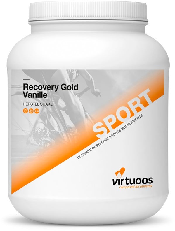 Recovery Gold stimuleert jouw herstel na het sporten. Deze complete herstelshake helpt om snel eiwitten, koolhydraten en vocht aan te vullen na een training of wedstrijd. Een shake levert 35 g koolhydraten (2:1 glucose:fructose) en 24 g eiwitten (waarvan 3 g leucine en 6,7 g BCAA’s).Belangrijkste eigenschappen35 g koolhydraten en 24 g eiwitten per shake 2:1 verhouding tussen glucose:fructose Complete herstel shake na kracht-, duur- of teamsportComplete herstel shakeRecovery Gold is een alles-in-één shake die je direct na het sporten kunt nemen om jouw herstel te bevorderen. Een goed herstel is essentieel om alles uit jouw training te halen. Of je nu een kracht-, duur- of teamsporter bent, iedere sporter kan profiteren van een goede herstelshake na het trainen.Geadviseerd gebruikMeng 2 afgestreken maatschepjes (64 g) met 200-250 ml water. Neem bij voorkeurdirect na het sporten om het herstel van de spieren te bevorderen.BewarenDroog, koel, beschermd tegen licht en buiten bereik van jonge kinderen.WaarschuwingenDe aanbevolen dosering niet overschrijden. Een gezonde leefstijl is van belang, evenals een gevarieerde voeding. Een voedingssupplementis geen vervanging van een gevarieerde voeding.IngrediëntenWei-eiwit isolaat (melk), maltodextrine, sucrose, fructose, verdikkingsmiddel (guargom), aroma, emulgator (zonnebloemlecithine).Aanvullende informatieDit product is geschikt voor vegetariërs.Inhoud&productinformatieInhoud: 1280 gram 20 porties van 64 gramProduct specificaties